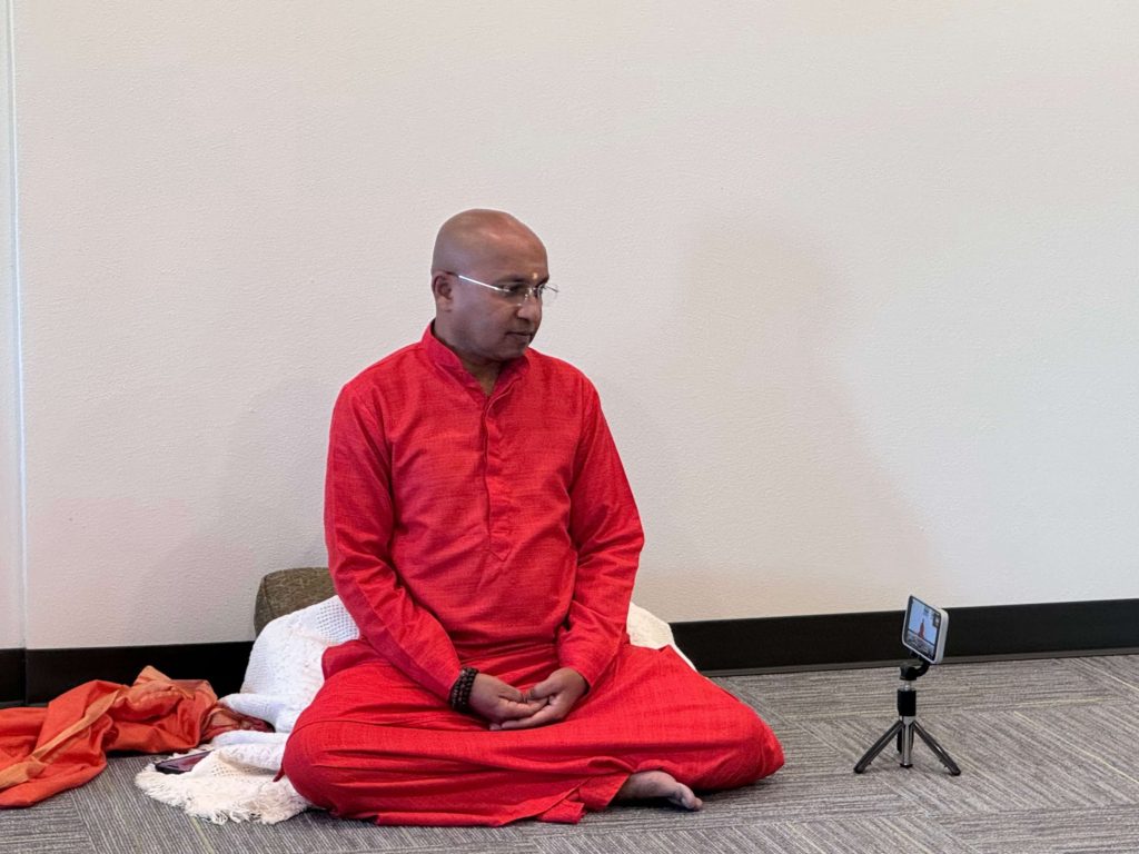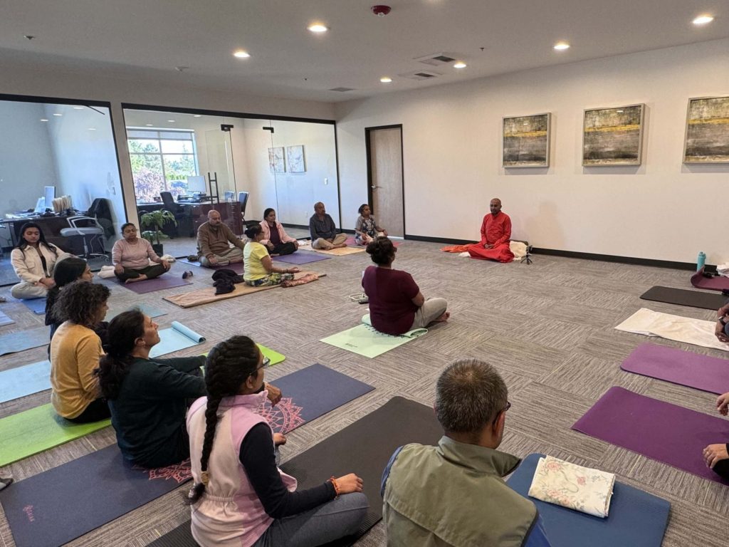 Daily meditation and prayers 3 days, 7 days yoga retreats 5 days Dhyan-Praveshika Swadhyaya Spiritual discourses Workshops on pranic healing Therapeutic yogic studies